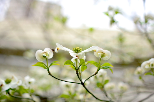 白い花水木は一見すると桜のような雰囲気もあり、また独特な蕾と雄しべが特徴。 望遠レンズじゃなかったので大きくクローズアップ出来ませんでしたが、それでも雰囲気はわかるでしょか。