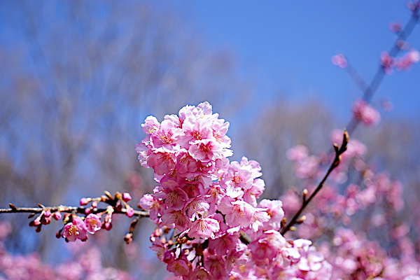 この濃いピンクと青空が、まだまだ寒さが残っているけれど華やかな感じにさせてくれます。