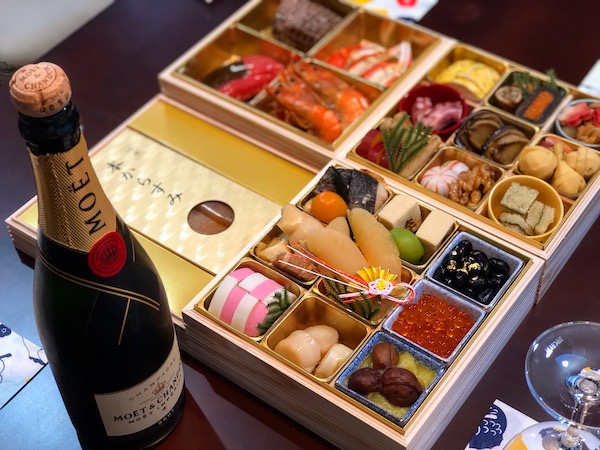 | 2019年最初の日、元旦も4人で新年会。 今年もお節料理を囲んでシャンパンで乾杯。 15時くらいからワイワイと楽しみ、夜には4人でカラオケボックスでこれまたワイワイ歌合戦。