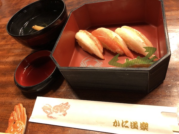 カニの握り寿司。 もう少し沢山食べたいくらい美味しい。