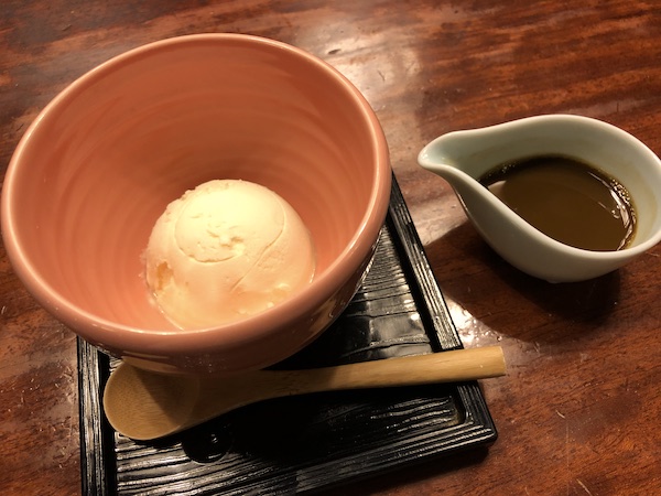 最後はデザート。今回はほうじ茶がけアイス。 抹茶がけのほうが美味しいかも。