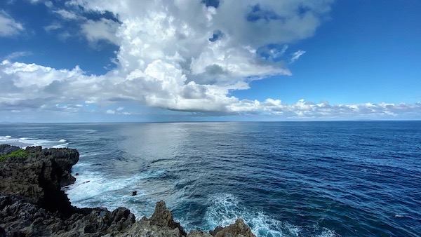 でもこの景色!青い空に青い海、白い雲。 断崖絶壁はまさに絵に描いたような景色で島ならではの風景。