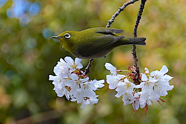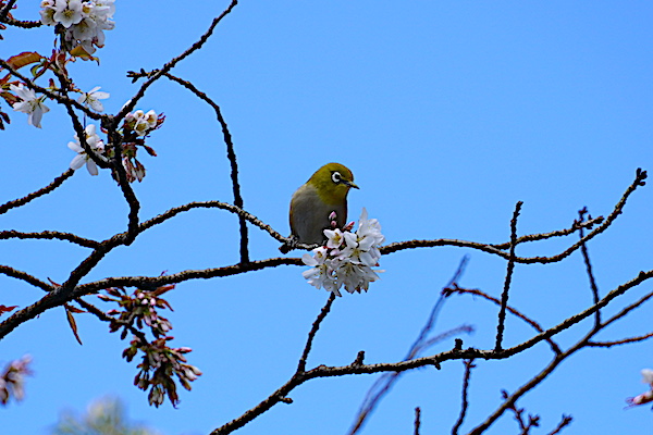 染井吉野、少しだけ咲いてました。 そしてメジロが一生懸命蜜を吸っていました。