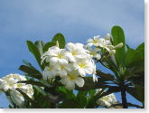 雨上がりのグアムのビーチ | 色とりどりの花の中で 白くて清楚なプルメリア |