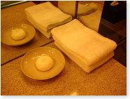 | バスルームは贅沢なつくりと広さで、アメニティー類も充実。 タオル類も惜しげなく用意され白地のシンプルな生地が 水分をやわらかく吸い取る。 |