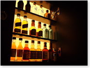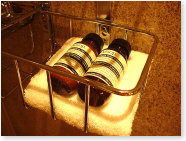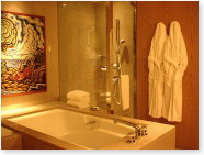 バスの壁には絵画が飾られ 西洋の雰囲気を感じさせるが 照明類は和紙で作られた笠が 柔らかな明かりを作り出している。 |