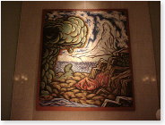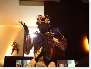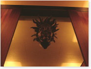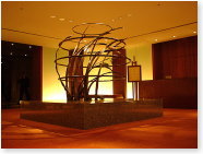 entrance入るとアイアンのモニュメント。 そしてエレベータに乗り込むと、エレベータ内は奇妙な顔のモニュメント。 41Fのチェックイン・カウンター・ホールには書庫があり そこが回廊となっている。 |