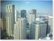 部屋からは西新宿の高層ビル群が 一望でき、夜は摩天楼の景色が 眺められる。 |