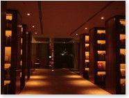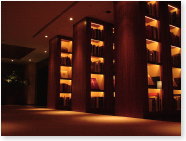| 単なるエレベータ・ホールだが、 落ち着いた雰囲気によって、 待たされている感じをさせない空間作り。 |