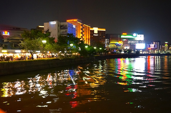 その後、天神まで徒歩で散策。なかなかな距離だったけれど、初めて歩く街は新鮮で、あれこれ観ていたら あっという間?に天神に到着。ここは博多では唯一の繁華街なのか、東京の街と同じような人出。 一旦、地下鉄でホテルに戻り、少し早めの夕食。もつ鍋。 2人分の割には少ない?と思ったけれど、十分なボリューム。おなかパンパン。 お腹を落ち着かせよう&屋台で軽くお酒と焼き鳥なんかの摘まみでも、、、と思うも、膨れたお腹は収まらず 夜の中州とまたしても天神を練り歩く。