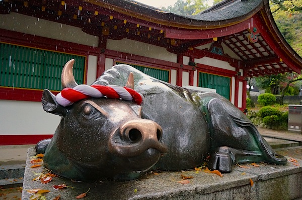 御利益がある牛の像をべったべった触って、旅が楽しく終わるよう祈って、お守りも買って 資料館を拝観して、梅ヶ枝餅を食べて、また電車に乗って天神まで。