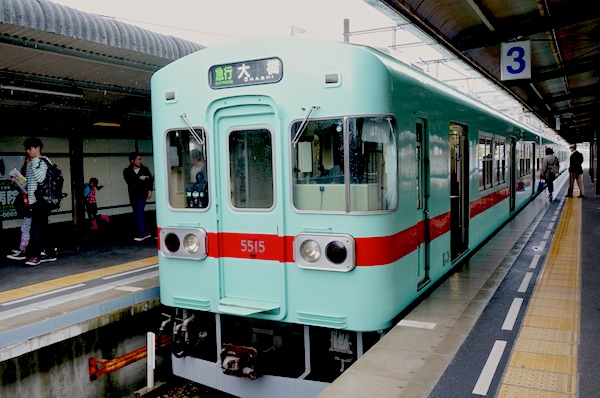 帰りの電車は西鉄ならではの車両で移動。この色、なんだか爽やか~!