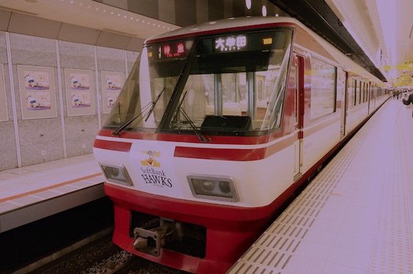今度は二日市駅で乗り換え。 行きと同じような形の電車に乗り換え、天神駅に到着。 鉄男のように写真パシャパシャと二人で撮りまくりw