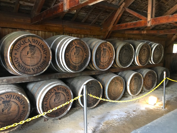 蒸留したお酒を樽に詰めて保存する倉庫も昭和風景。