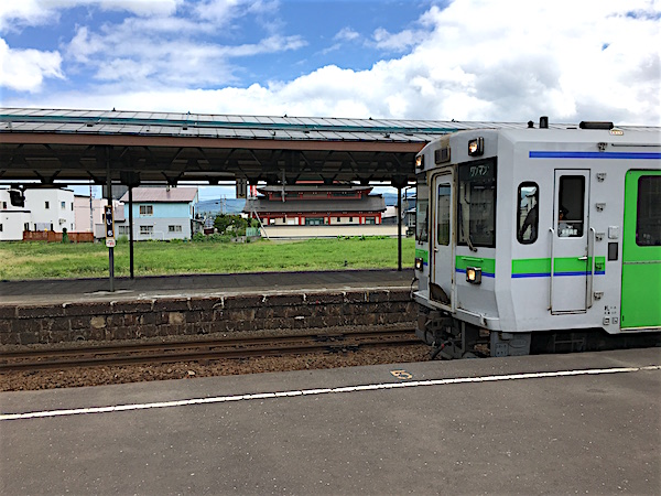 2両編成のディーゼル車という、長閑な雰囲気とは違い、車内は満員電車状態。 本来、北海道はこの時季は暑くても湿度少ないカラッとした気候のはずが 今年の異常気象がここ北海道にも影響しているのか、クーラーが効いた車両でも蒸し暑い。