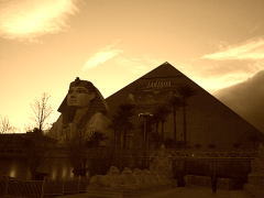 古代エジプトをイメージして、黒いピラミッドとスフィンクスがシンボルのホテル |